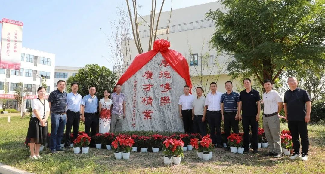 仪式结束后,文申柳与徐骏共同为“校训石”揭幕并合影留念。