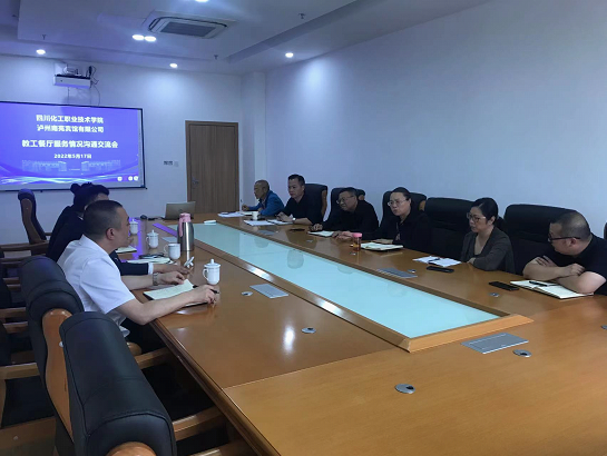为进一步提升学校教工餐厅的服务品质与服务满意度,筑牢食品安全意识,确保教职工工作餐安全、营养、健康。5月17日,后勤服务处邀请泸州南苑宾馆有限公司到我校就教工餐厅服务情况举行沟通交流会。泸州南苑宾馆有限公司拓展部经理杨正均、行政总厨钟屈勇、前台经理高美媛、学校党委副书记、工会主席陈淑娟、学校副院长邓启华参加了会议,沟通交流会由后勤服务处处长罗伦忠主持。