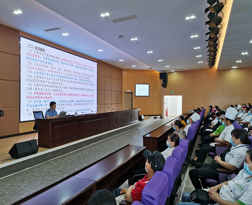 为进一步加强和规范学校食品安全与营养健康管理,全面提升学校餐饮从业人员的食品安全基本知识和规范操作技能,5月20日下午,学校后勤服务处邀请泸州市纳溪区市场监管局黄秀强老师到校举办了学校食品安全操作规范培训会。后勤服务处各食堂餐饮服务和资产公司超市等从业员工近200人参加培训。后勤服务处副处长赵深茂主持培训会。